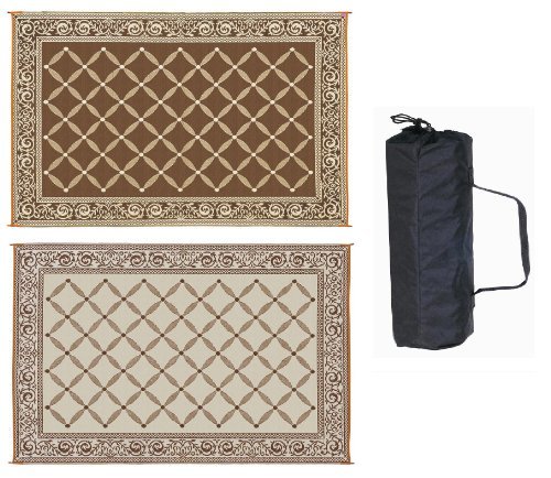 Reversible mats can be used for your RV patio, in the garden, on the beach, perfect for placing under pets exercise pens and cages, picnic and various Indoor and Outdoor spaces. 100% virgin polypropylene material makes a durable mat Breathable material does not hurt grass UV protection against sun exposure Easy clean, just spray with water or sweep. Light weight and can be folded into a very compact size for easy storage Size: 6′ x 9′